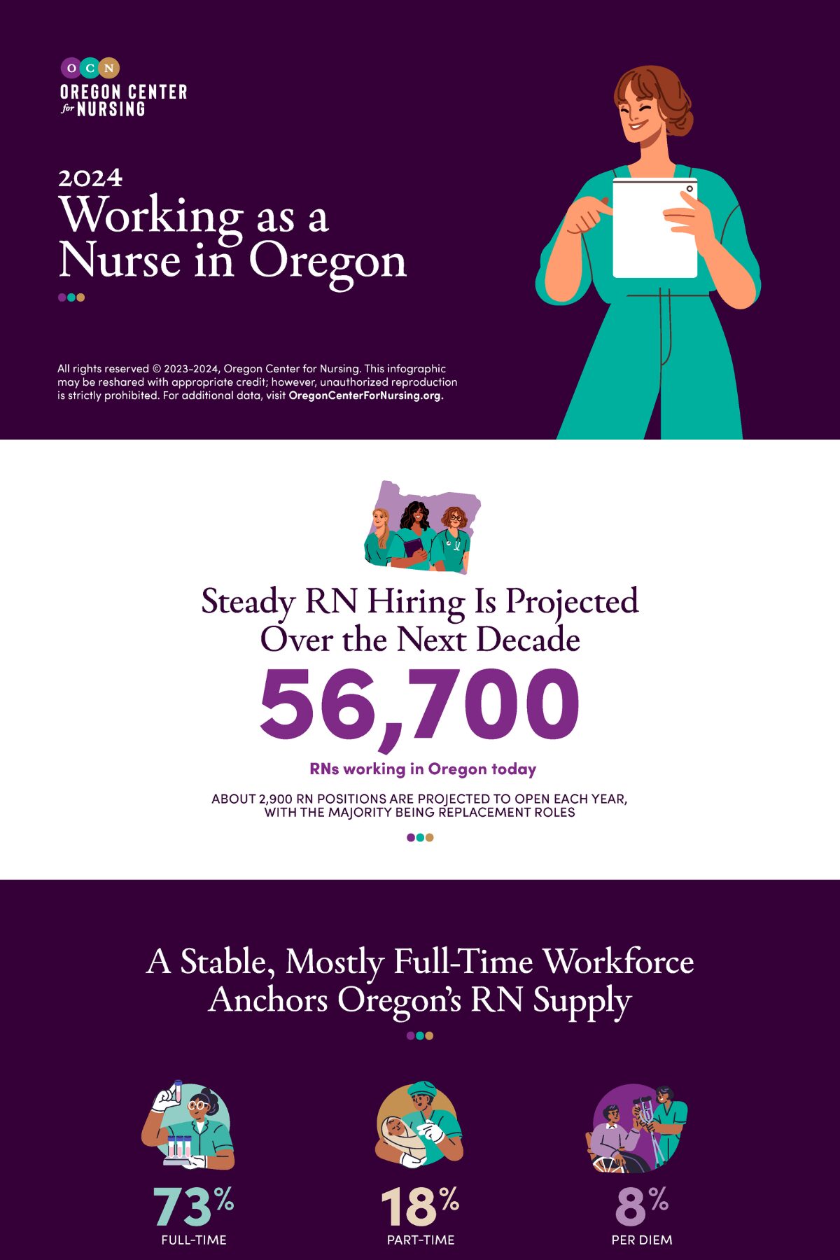 The Oregon Center for Nursing produces freely available, research-informed printable resources to support healthcare leaders, policymakers, and communities across Oregon. These visual tools are designed to communicate key trends, workforce data, and nursing-related insights in an accessible format. You are welcome to download, use, and share these materials with appropriate attribution to the Oregon Center for Nursing.